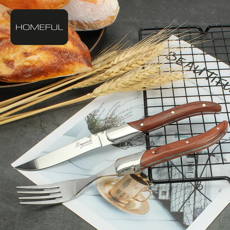 Ensemble de couverts modernes pour cuisine, en acier inoxydable, couteau et fourchette à steak avec manche en bois pour hôtel et restaurant