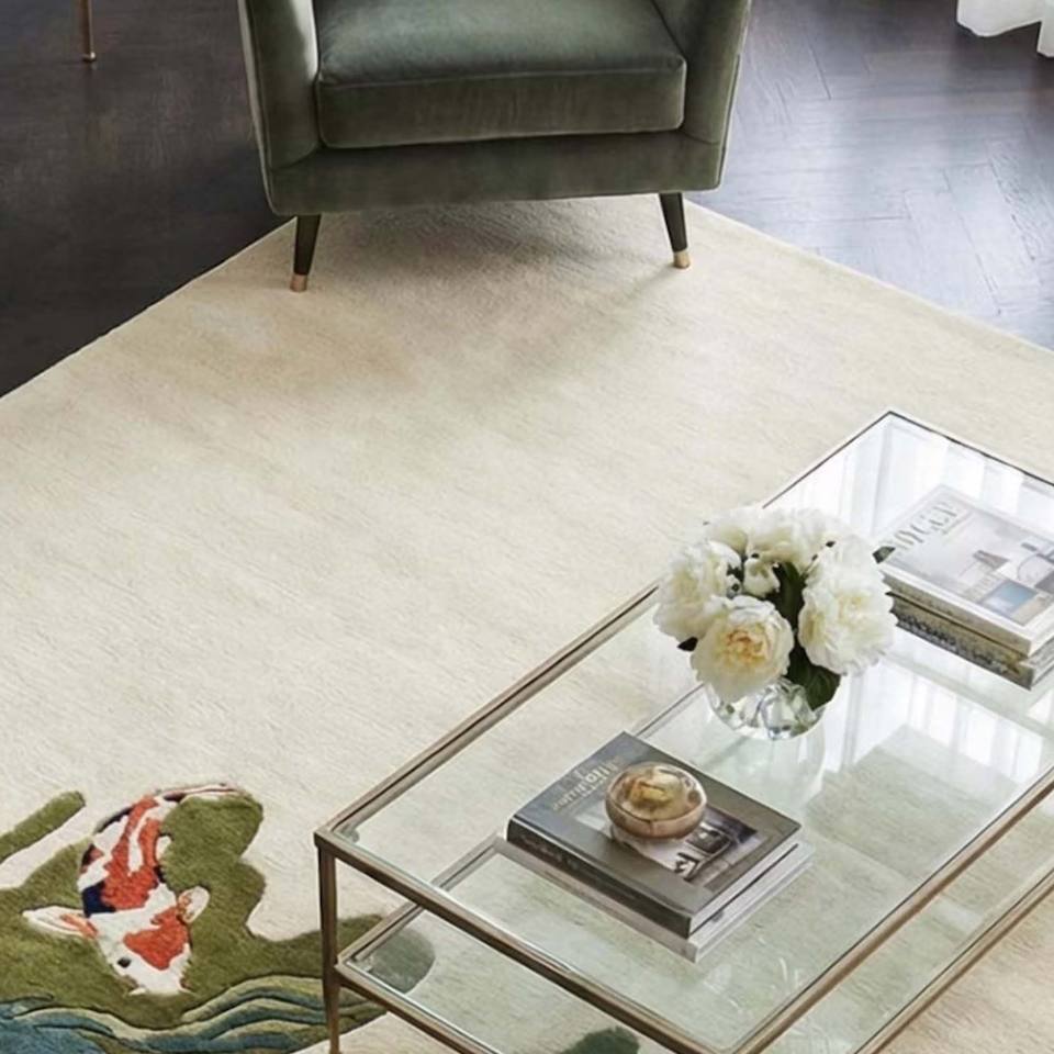 Tapis en laine moderne à motifs de poissons Koi, abstrait et artistique, tufté à la main, pour décoration de salon, design étang aquatique, tapis de sol doux et luxueux pour la maison
