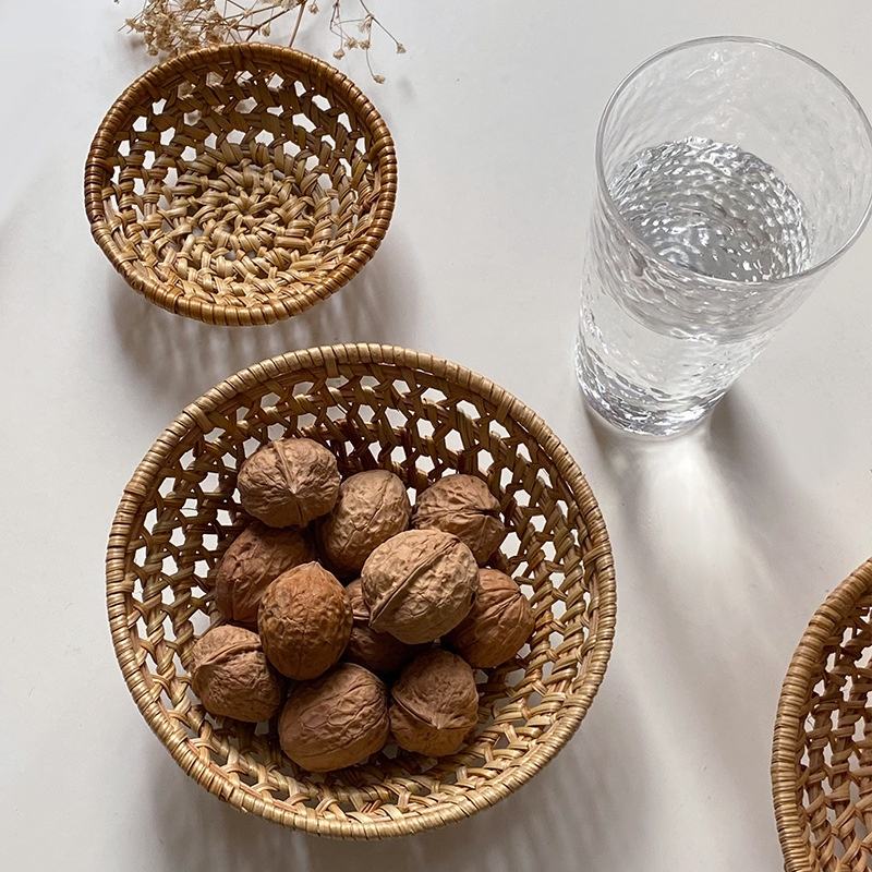Style japonais coréen moderne petite assiette de nourriture et plat de fruits automne rotin tissé paniers de rangement porte-serviettes passoire à thé