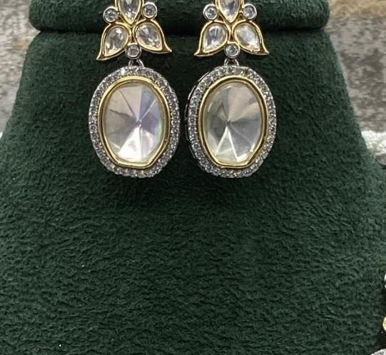 Modern Kundan Brass Bridal Necklace & Earrings Set with American Diamonds Elegant Jewelry for Weddings & Parties
