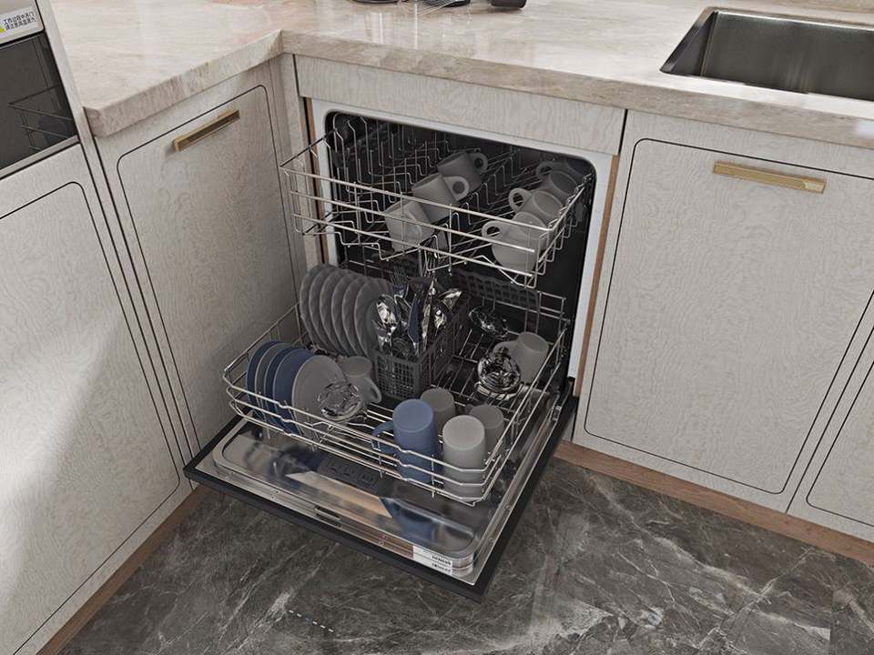 Armoires de cuisine modernes en bois en forme de L avec un grand espace de rangement, peinture laquée, couleur quartz, plan de travail pour cuisines