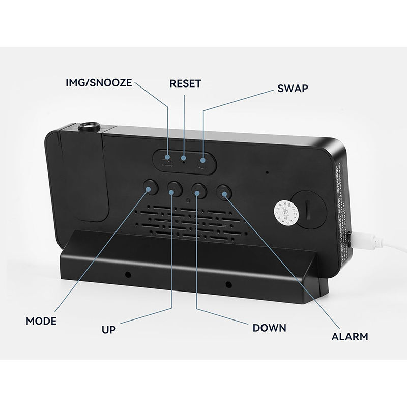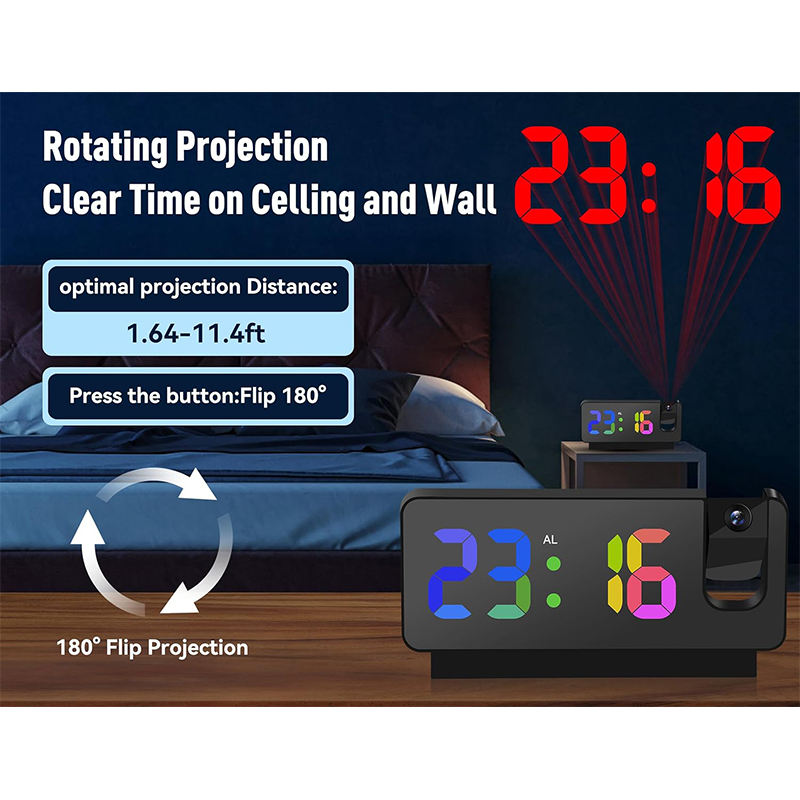 Réveil numérique LED moderne pour chambre à coucher, horloge électronique de bureau intelligente avec projecteur rotatif, sûr et pratique