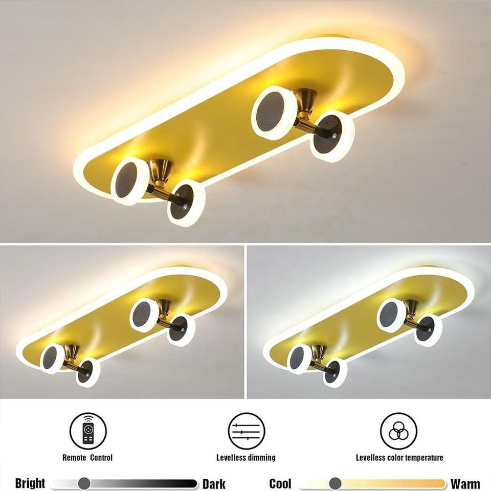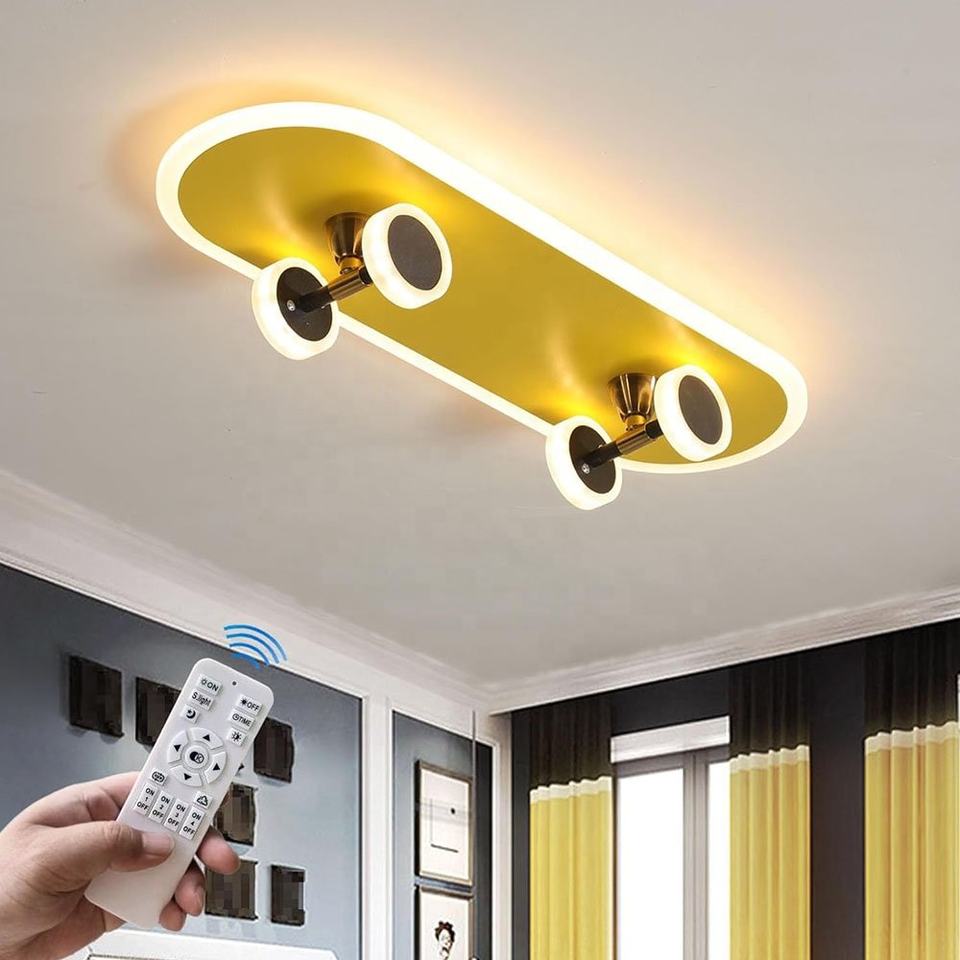 Plafonnier LED moderne pour enfants, garçon, chambre simple, lampe de chambre d'enfant, forme de skateboard, 32W, luminaires de plafond intérieurs