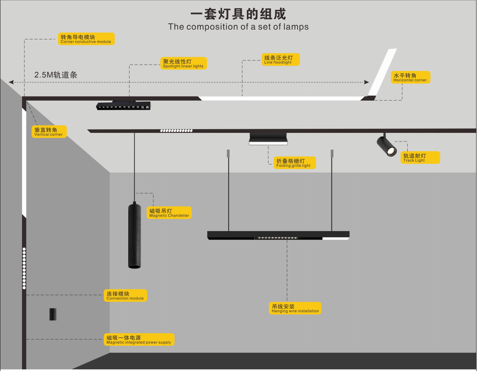 Lampe LED moderne 6W/12W/18W Blanc Noir Système intelligent Zigbee Rail de lumière magnétique rotatif 0-10V Gradation Anti-éblouissement