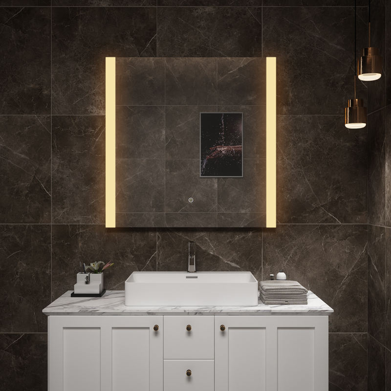 Miroir de salle de bain moderne à LED avec design graphique pour hôtel, appartement et villa
