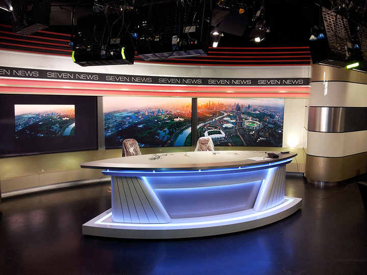 Table de présentation TV LED moderne avec surface solide pour la diffusion, les hôtels, les écoles et les hôpitaux