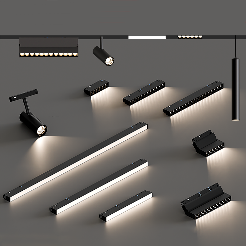 Système d'éclairage sur rail à LED moderne avec projecteur magnétique à puce Cob intégré dans un corps en aluminium pour les centres commerciaux et les bureaux