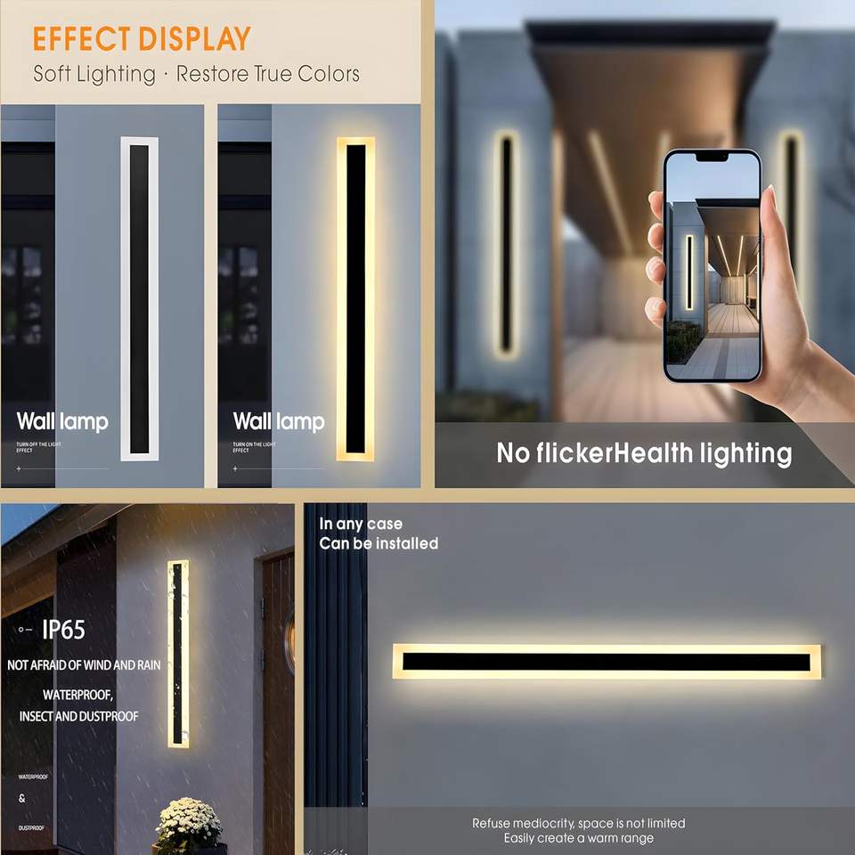 Applique murale LED moderne 55W étanche IP65 blanc chaud 110V rectangulaire noir montage mural luminaire élégant