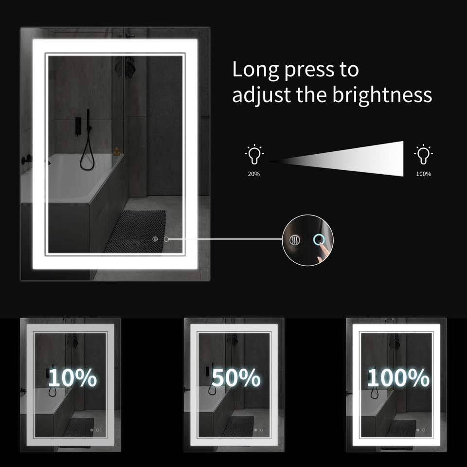 Miroir de salle de bain mural moderne anti-buée à LED avec lumière de contrôle tactile pour l'application de maquillage de salon ou d'appartement