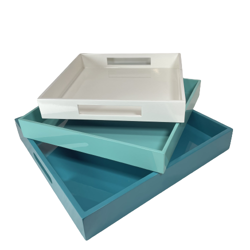 Plateau de service laqué moderne, durable et décoratif, rectangulaire, pour aliments, boissons, service à thé et décoration intérieure