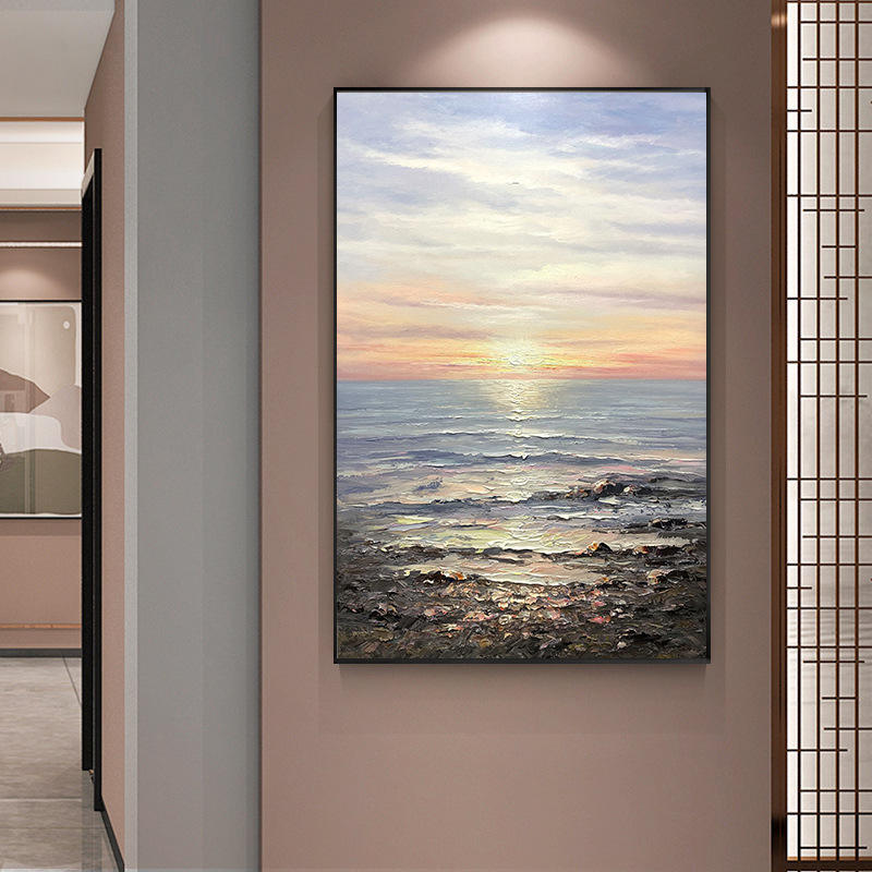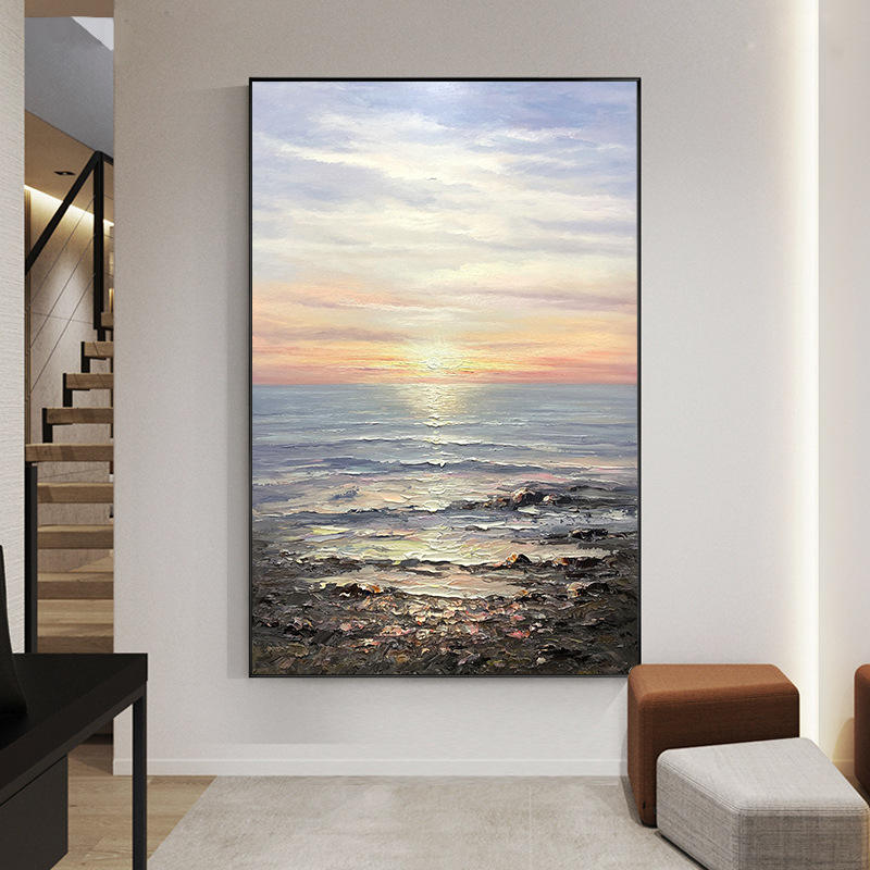 Tableau mural paysager moderne, peinture à l'huile abstraite faite à la main sur toile, vue sur la mer, personnalisable pour la décoration intérieure