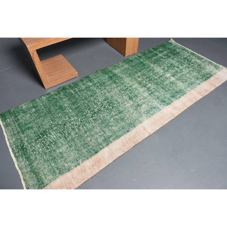 Tapis en laine moderne de grande surface de 3.4x7,9 pieds Tapis turcs à motif abstrait vert beige pour couloir, rectangle, chambre à coucher/chevet en latex
