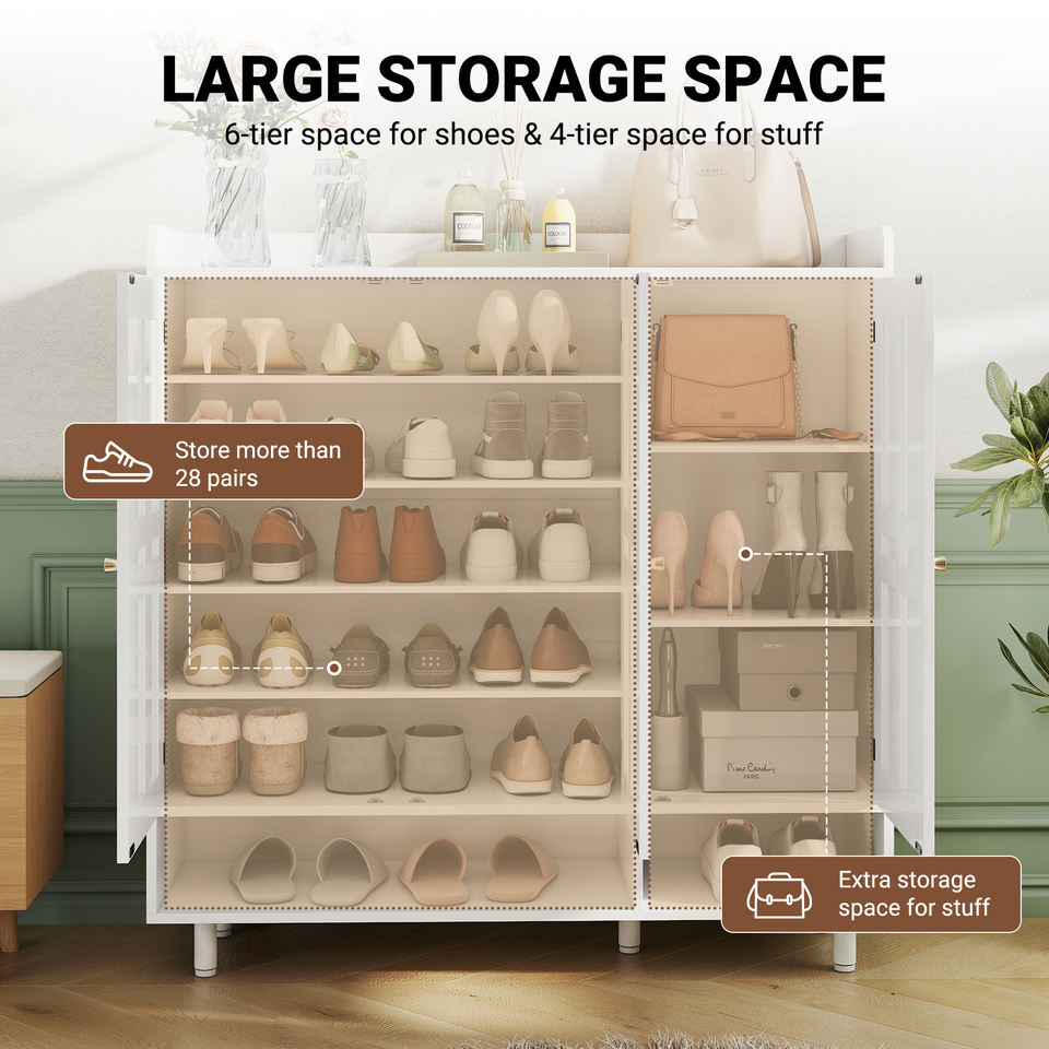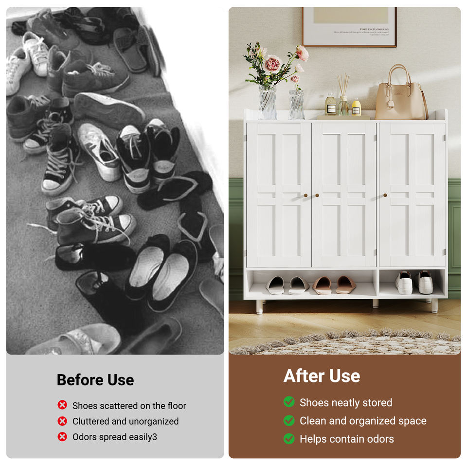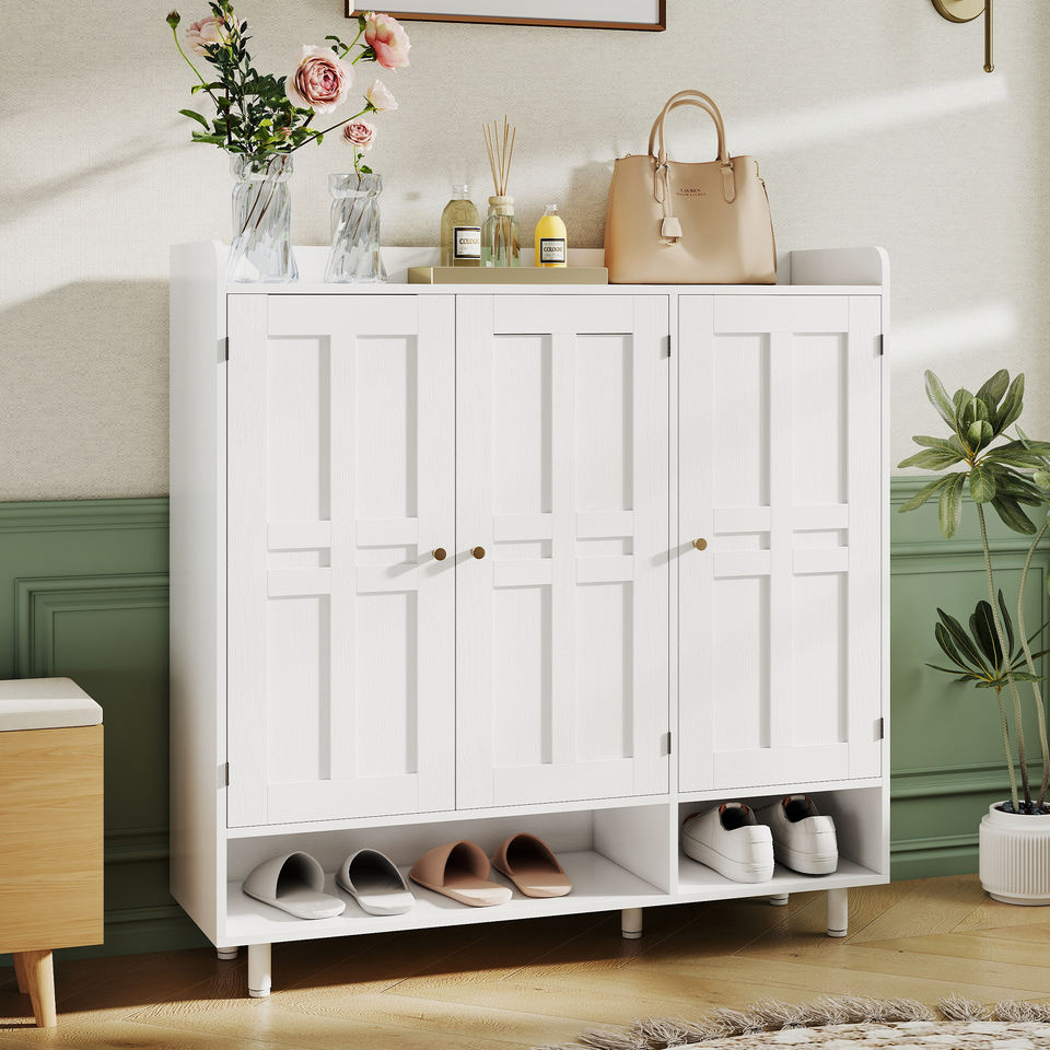 Modern Large Capacity Wood Shoe Storage Cabinet with Open Bottom Shelf & Top Display Area Dustproof Eco-Friendly for Living Room