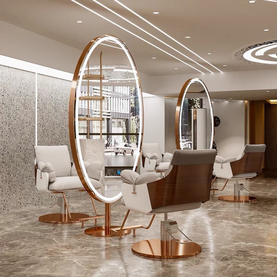 Miroir de salon LED doré moderne de grande taille pour usage hospitalier avec mobilier de coiffure