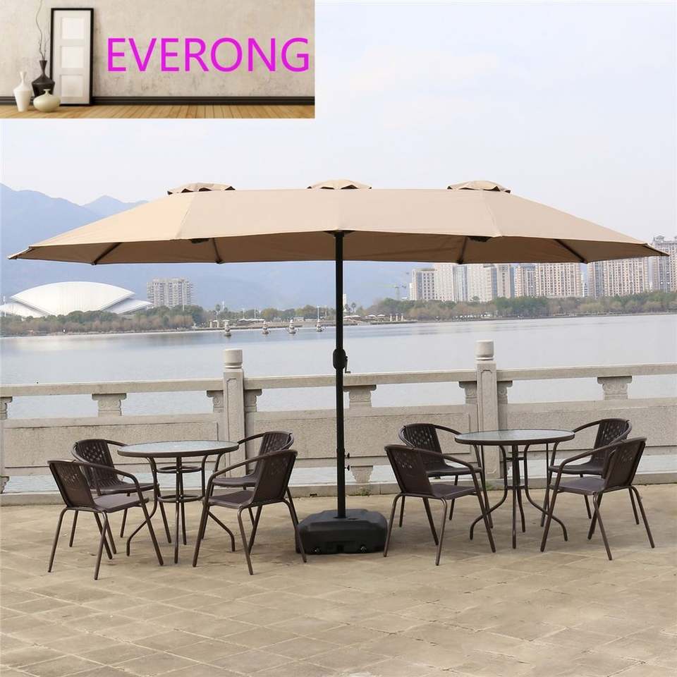 Parasol d'extérieur moderne, grand, rectangulaire, imperméable, en polyester, commercial, à trois têtes, colonne romaine, mobilier de patio