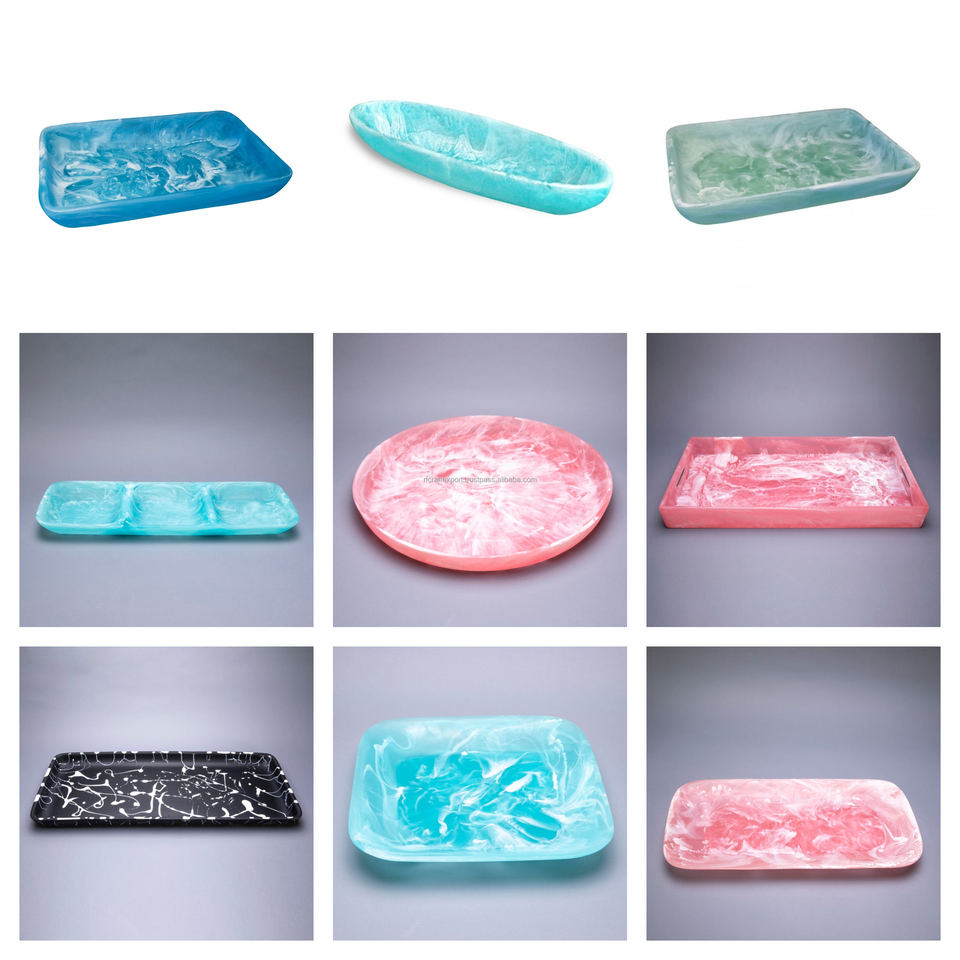 Grand plateau de service moderne en résine rose tourbillon Assiette d'organisation de Noël pour la maison Noir Multicolore Parfum Maquillage Plateaux décoratifs