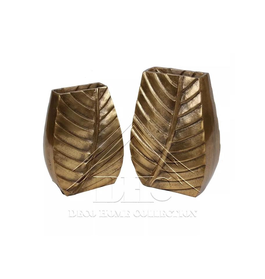 Modern Leaf Design New S/2 Aluminum Flower Vase Handmade Gold Color Home Decoration Wedding Metal Iron Material Small Christmas