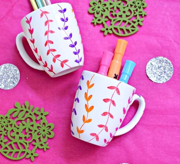 Mug à café en céramique moderne à imprimé feuilles, finition brillante, poignée solide, design durable, parfait pour le thé, le café, la maison, le bureau, cadeau