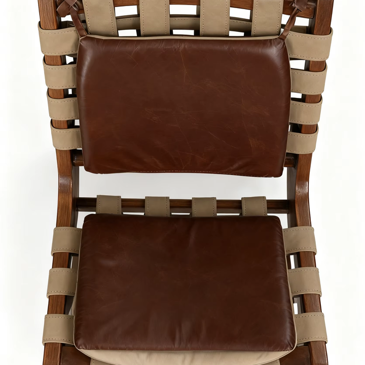 Modern Leather Leisure Armchair with Handwoven Wooden Frame | Bedroom Living Room & Outdoor Use | Eco-Friendly & Durable