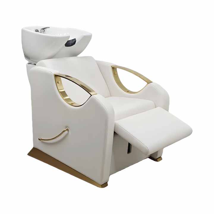 Chaise de shampooing en cuir moderne avec lavabo en céramique Repose-pieds réglable - Design ergonomique pour salon de coiffure Salon de beauté Spa