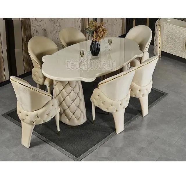 Modern Leather Tufted 6 Seater Dining Table Set American Style Dining Table With Chairs Luxury 6 Seater Leather Tufted Dining
