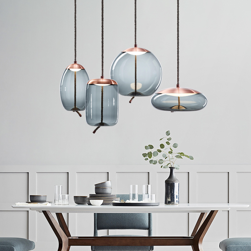 Suspension LED Moderne Corde de Chanvre en Verre Style Nordique Design pour Salle à Manger Chambre Bar Décoration Loft Luminaire