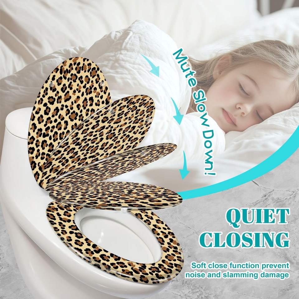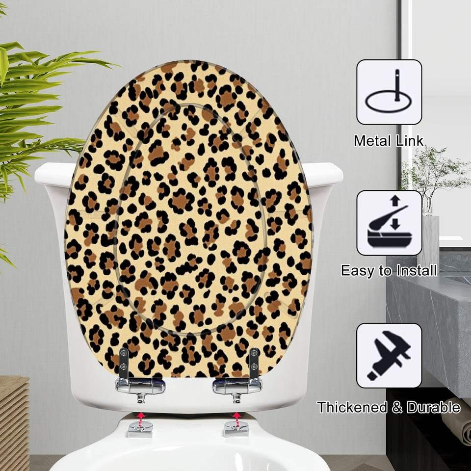 Siège de toilette rond allongé moderne à motif léopard Installation facile avec charnières à dégagement rapide Couvercle à fermeture lente Disponible en stock