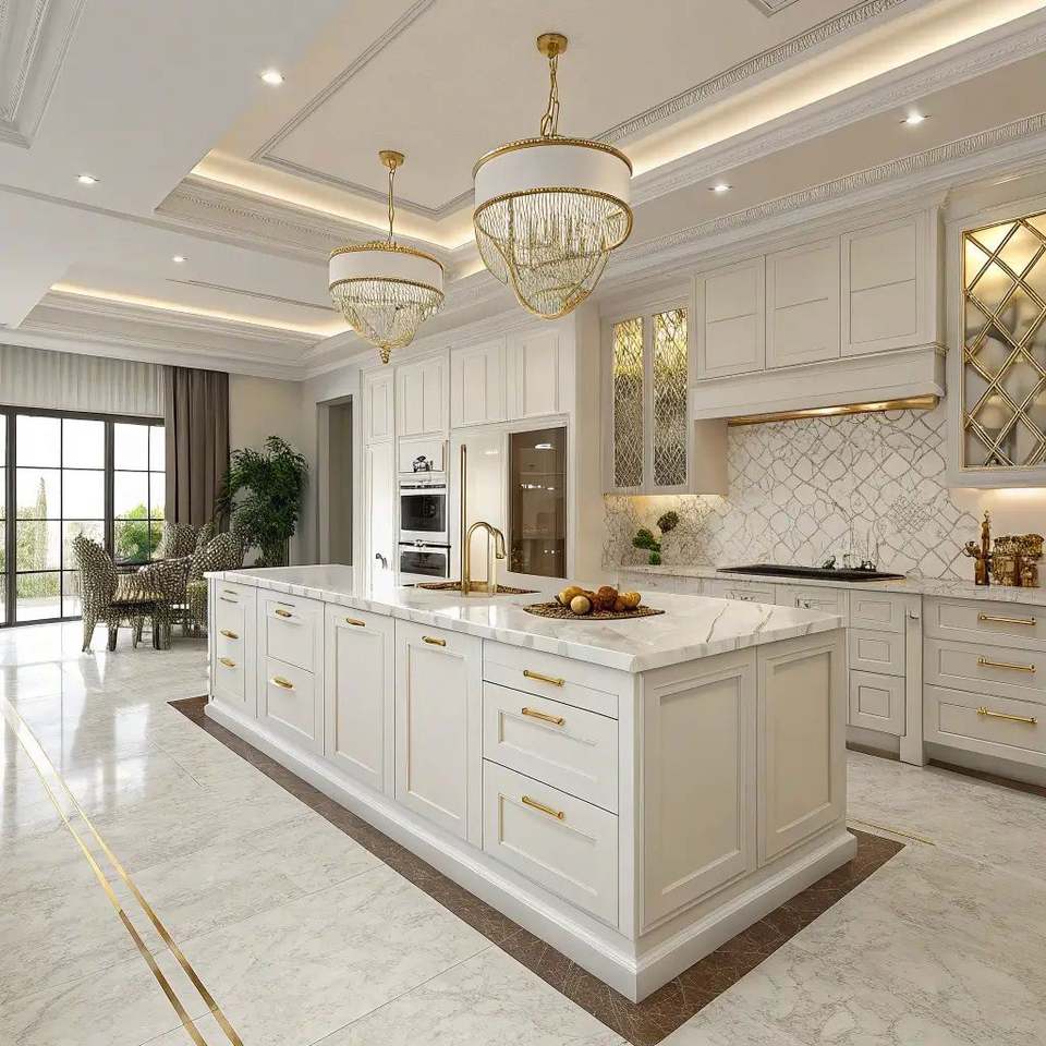 Cuisine moderne de luxe avec éclairage LED intégré, conception de placards muraux pour toute la maison, armoires de cuisine