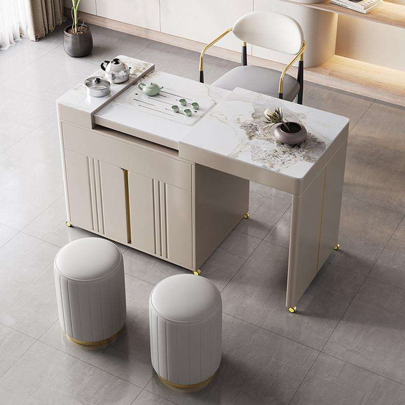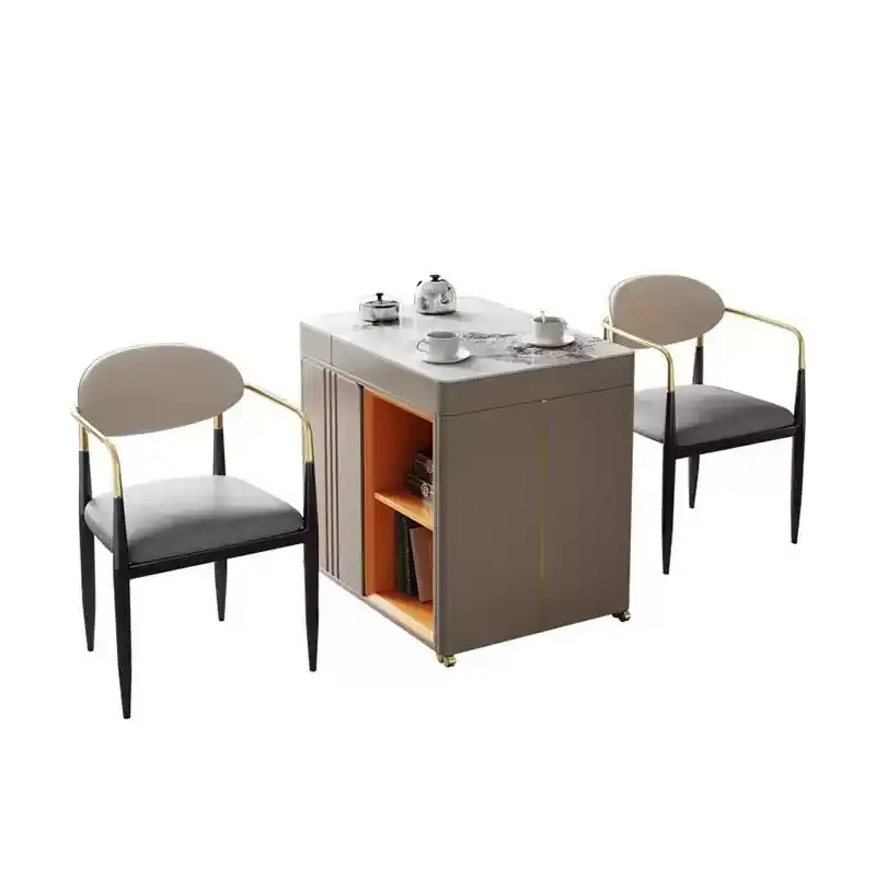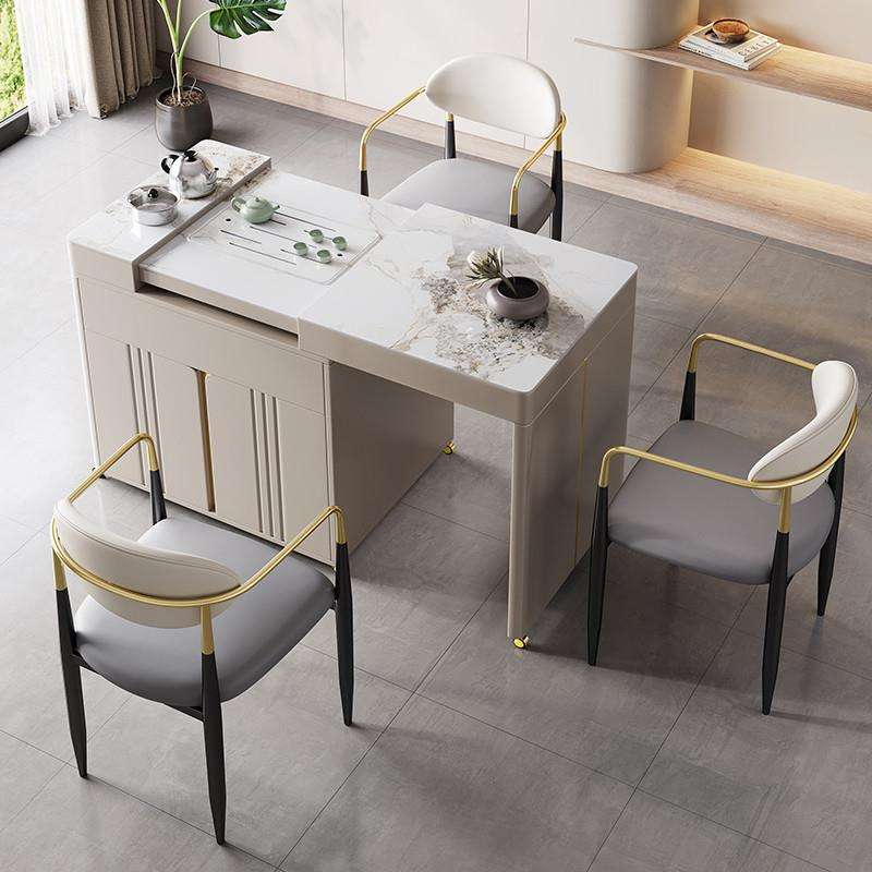 Îlot de cuisine moderne léger de luxe haut de gamme îlot central en marbre avec comptoir rétractable pour salle à manger bureau