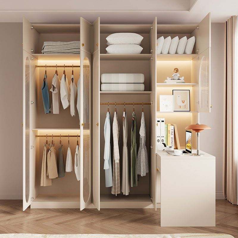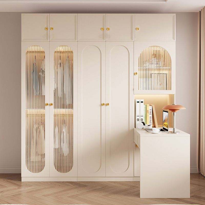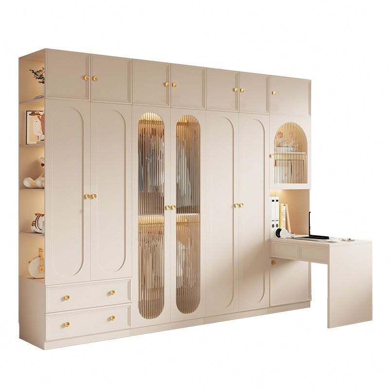 Armoire moderne de luxe avec portes en verre et étagères LED, design de placard intégré sur mesure pour le rangement de la chambre à coucher