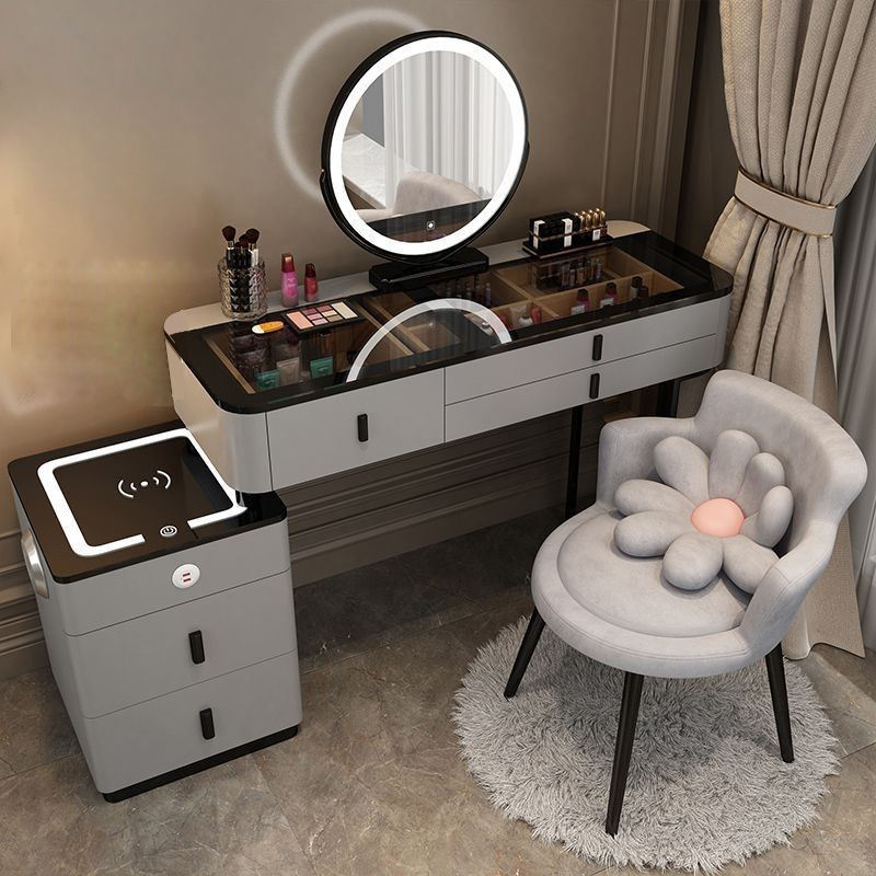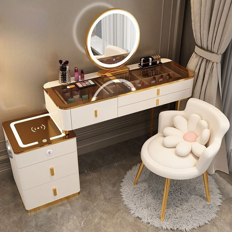 Coiffeuse de chambre moderne éclairée, réglable et extensible avec miroir, plateau en MDF et verre