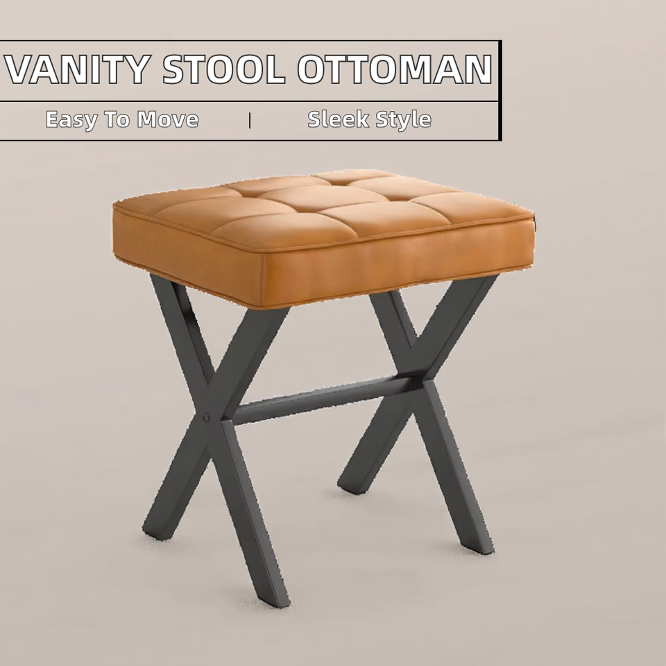 Tabouret de coiffeuse moderne et léger de forme carrée avec repose-pieds en X pour chambre à coucher, salon, hôtel, appartement et entrée