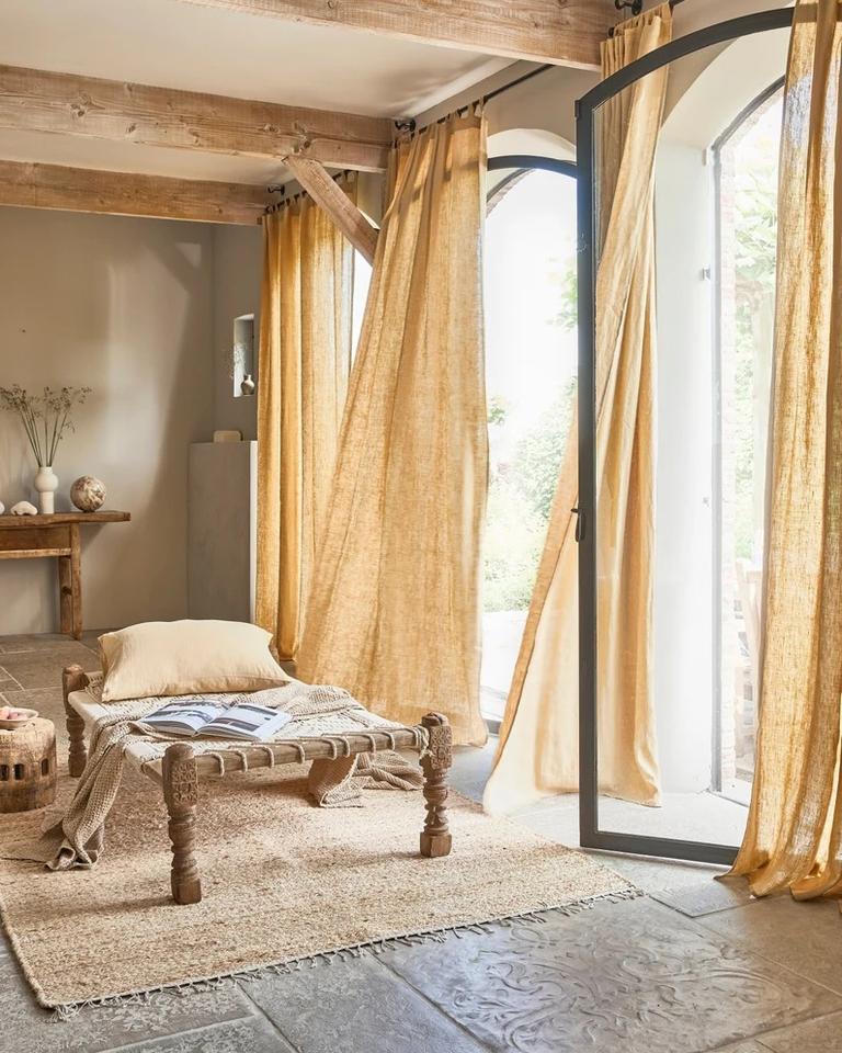 Panneau de rideau en lin moderne Tab Top Rod Pocket Rideaux de fenêtre semi-transparents Taille personnalisée Lin naturel Motif solide Vie en toutes saisons