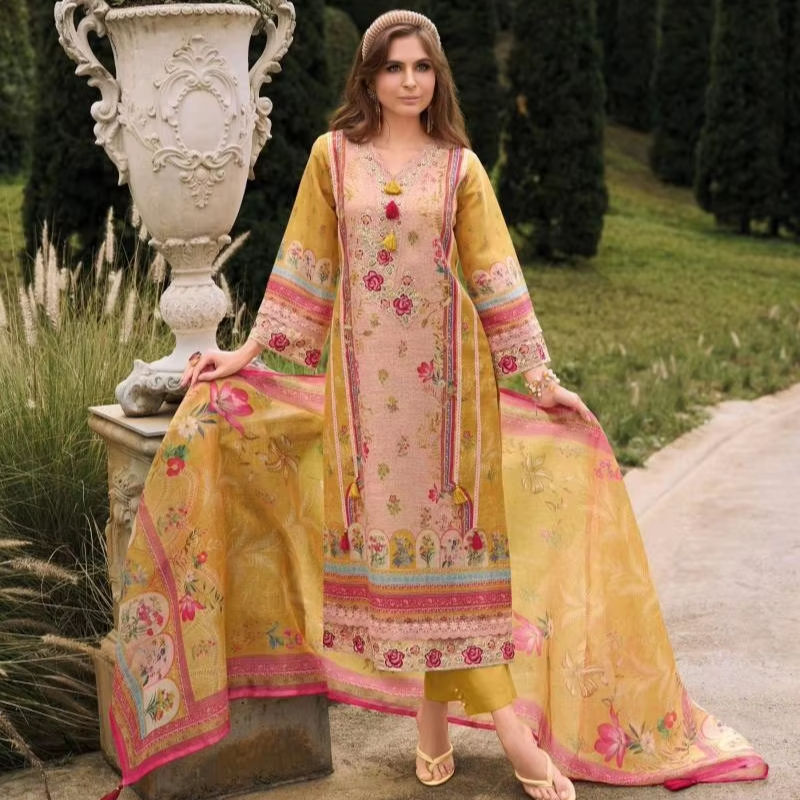 Ensemble Kurti en Lin Moderne Réversible à Séchage Rapide avec Bas et Dupatta – Vêtements Indiens et Pakistanais pour Femmes – Plusieurs Tailles et Couleurs – OEM ODM