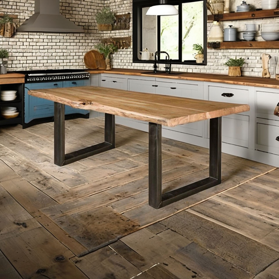 Table à manger rectangulaire moderne en bois de manguier massif avec bord naturel, pliable, pieds solides, 6 places, pour hôtel, ensemble de salle à manger