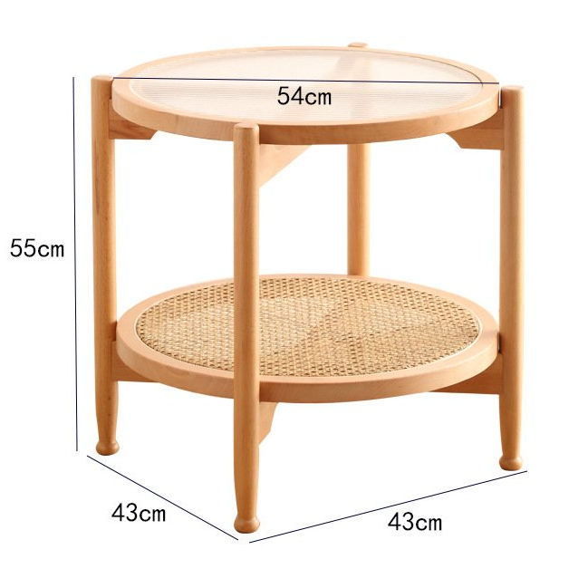 Salon moderne Table basse double couche de bureau en bois massif rotin et verre Petite table basse amovible portable pour l'extérieur