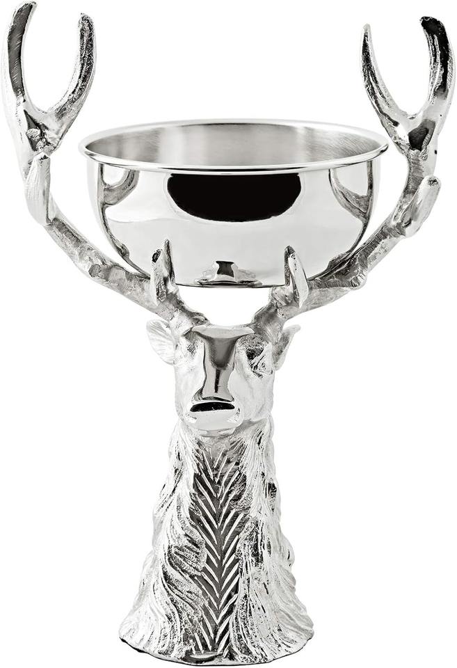 Statue de tête de renne en métal argenté de style moderne, décoration festive de Noël, sculpture de cerf, art animalier forestier