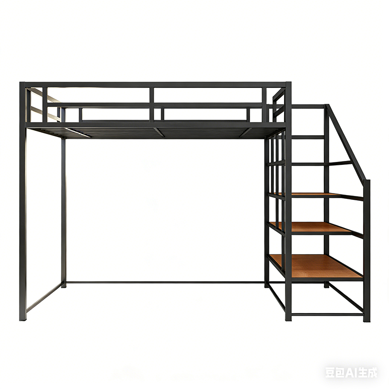 Lit mezzanine moderne avec escalier de rangement pour appartement studio, solution gain de place
