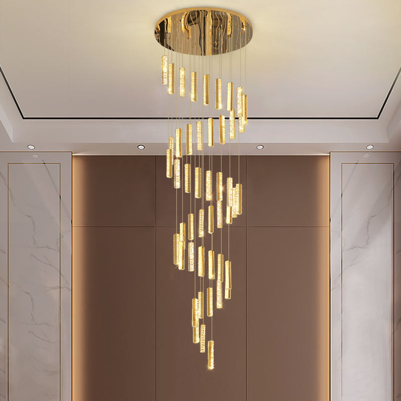 Moderne Loft Story Foyer long Pendentif Lumières Duplex Bâtiment Or Lustres en cristal pour escalier
