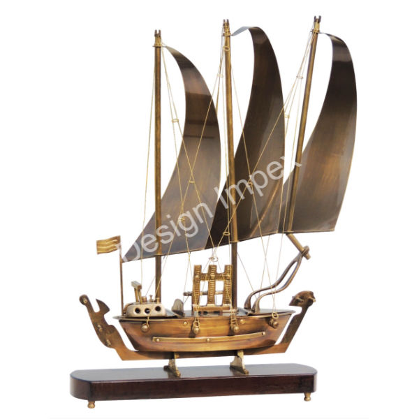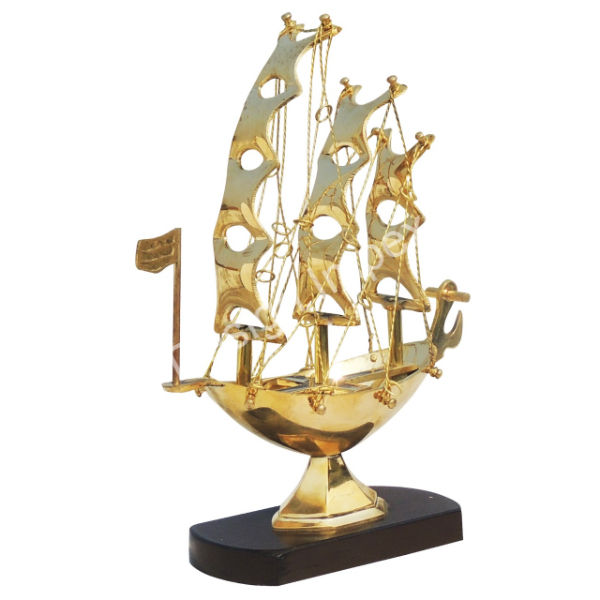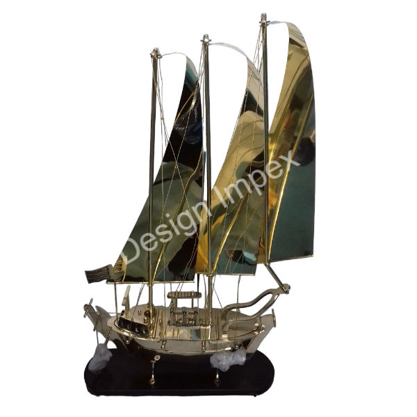 Looks modernes Navire de croisière de luxe Fourniture en gros Navire en métal doré Base en bois Meilleure vente Accessoires nautiques Grand bateau royal