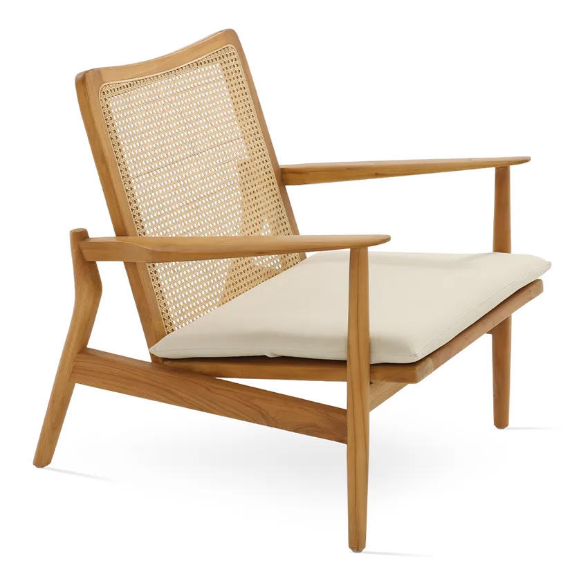 Matériel principal:Bois de teck solide + rotin naturel tissé + coussin