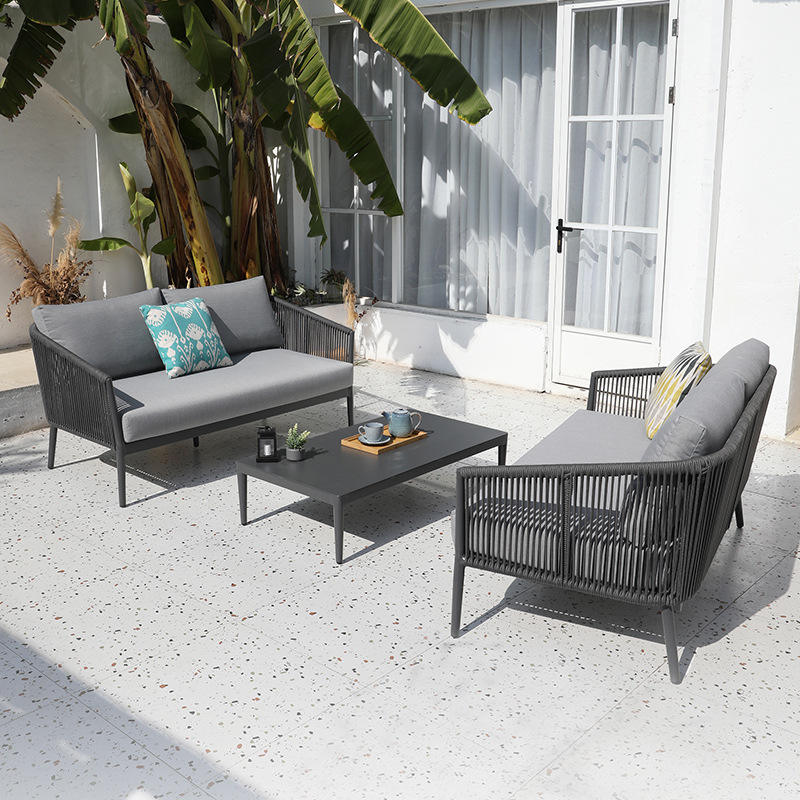 Canapés de jardin en rotin d'aluminium de luxe modernes à 2 places, ensembles de meubles d'extérieur en osier pour cour, patio, coussins inclus