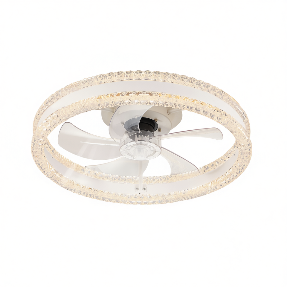 Ventilateur de plafond LED moderne de luxe 20 pouces, double anneau, montage encastré, pales cachées, télécommande à intensité variable, moteur DC, fer blanc