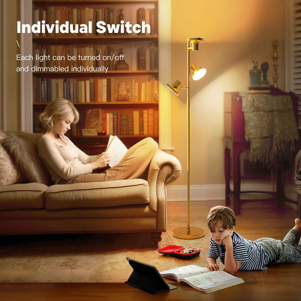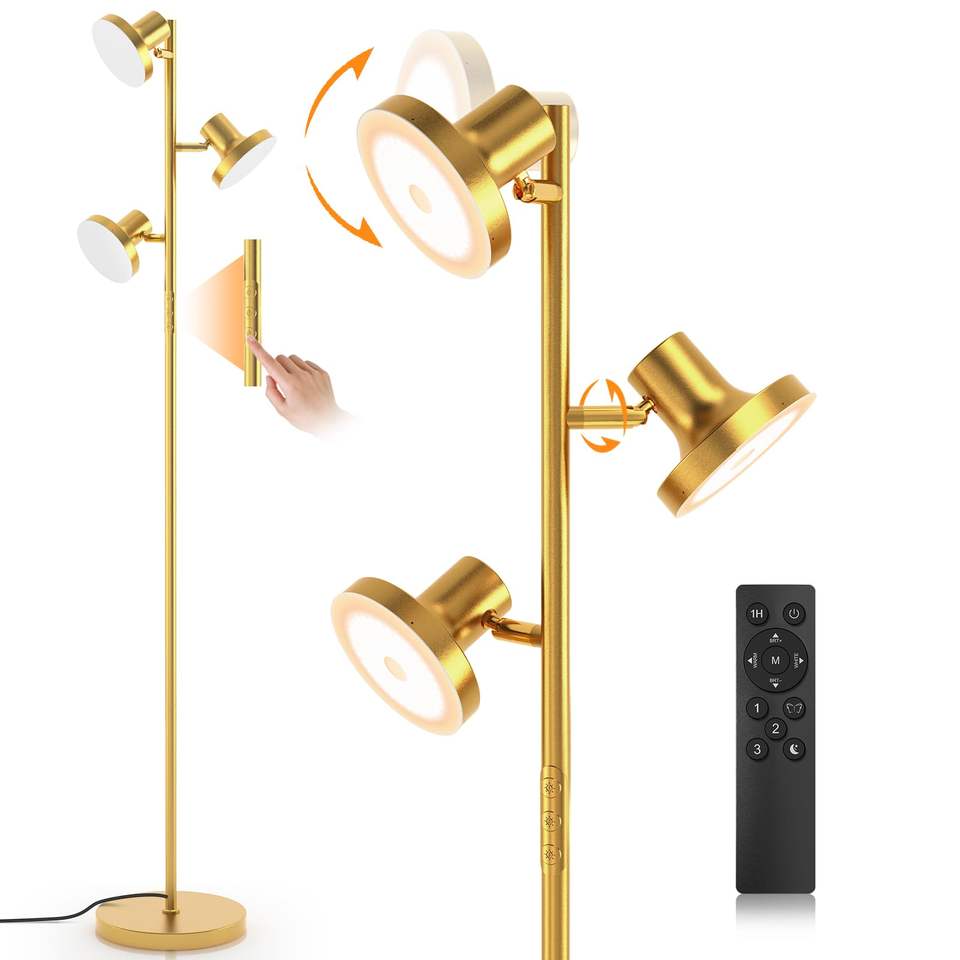 Lampe sur pied moderne de luxe à 3 lumières avec projecteur LED pour le salon, la chambre à coucher, les tâches et la lecture sans fil avec télécommande
