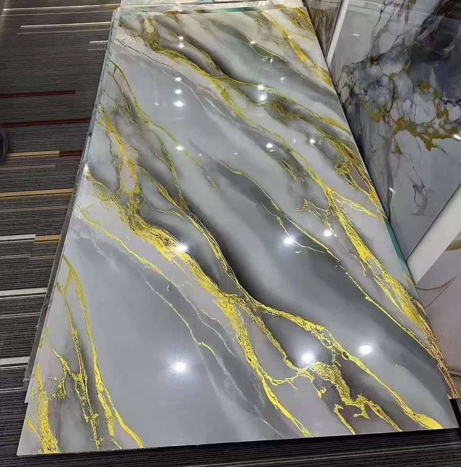 Panneaux muraux en PVC 3D effet marbre de luxe moderne, nouveau design, panneaux muraux brillants, panneaux UV colorés, imperméables, directement de l'usine, imperméables, pour le hall