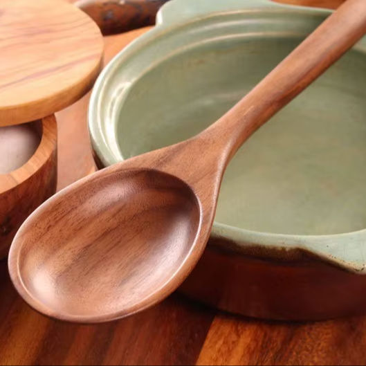 Modern Luxury Acacia & Teak Wood Disposable Kitchen Utensil Set with Spoon Eco-Friendly Party Cooking Tools Durable Outdoor Use
