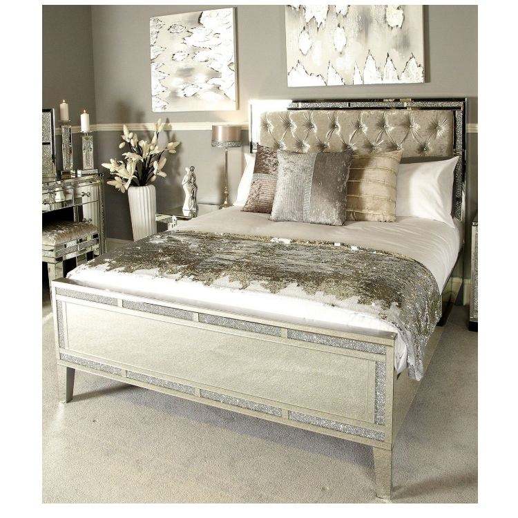 Cadre de lit moderne de luxe pour chambre à coucher, taille complète, hauteur réglable, avec miroir en diamant écrasé scintillant, pour la maison, l'hôtel, l'appartement