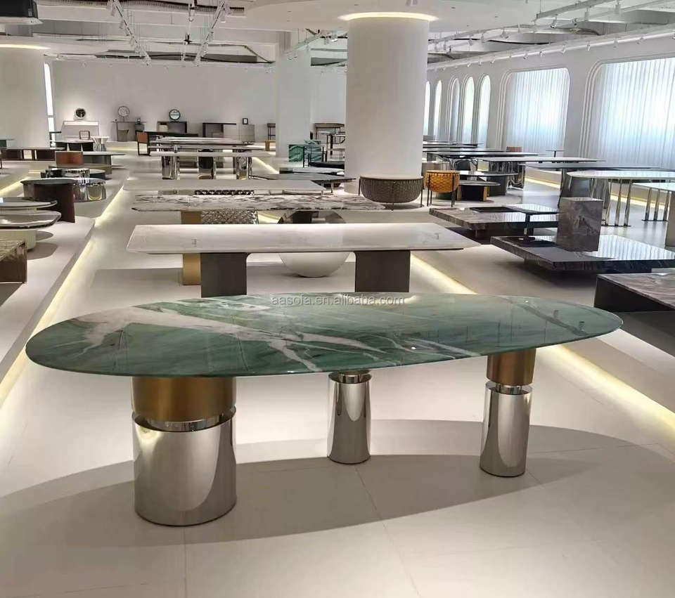 Ensemble table à manger Bentley 14 extra large de luxe moderne dessus en marbre vert table à manger pour 6-20 personnes meubles d'intérieur Chine