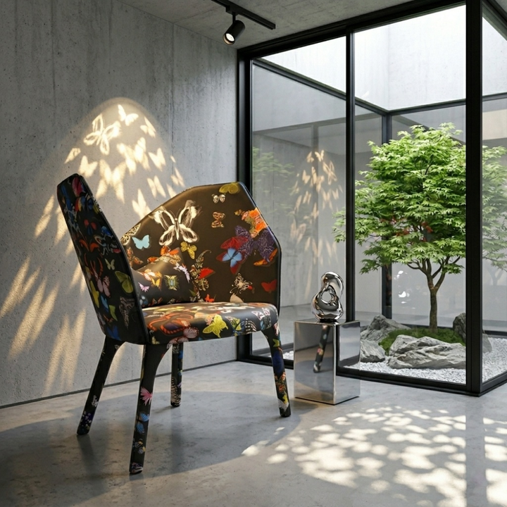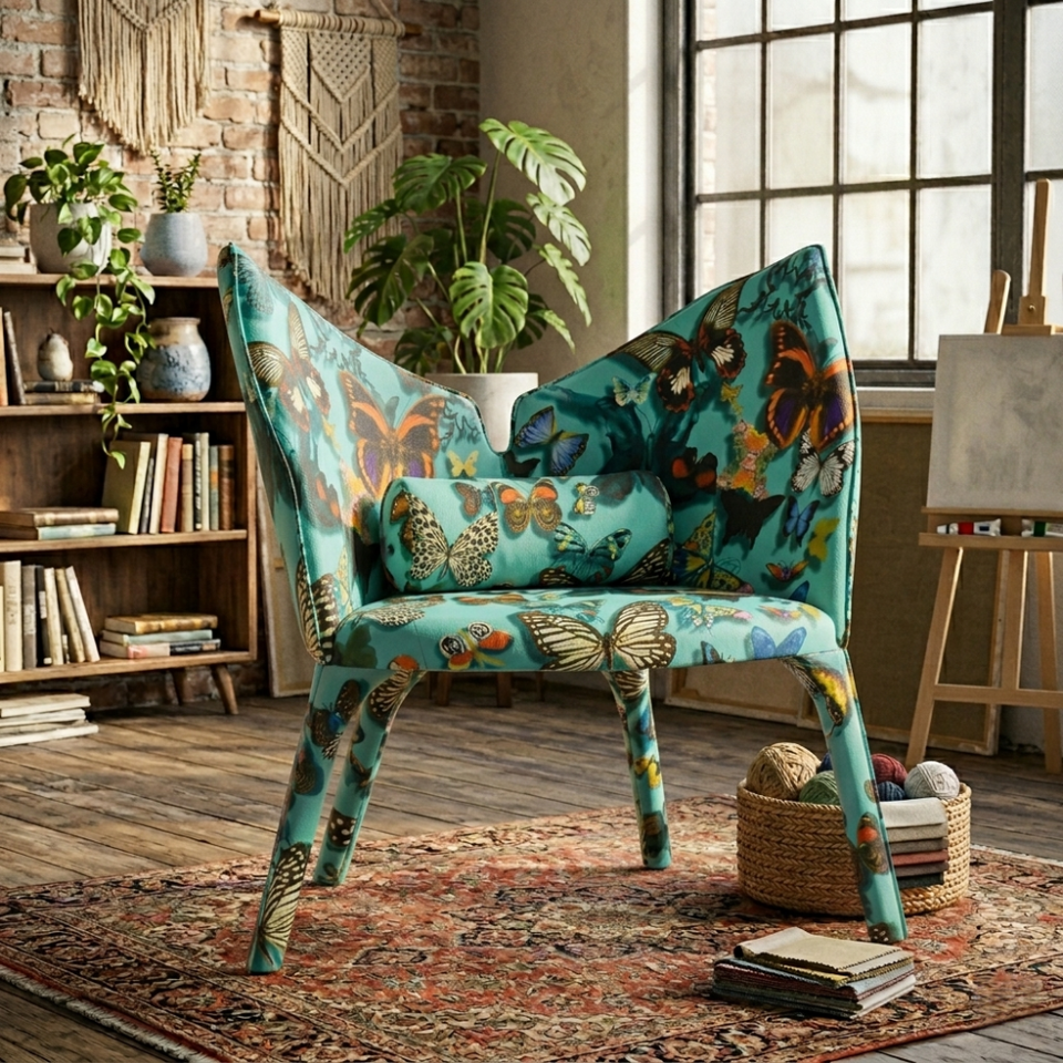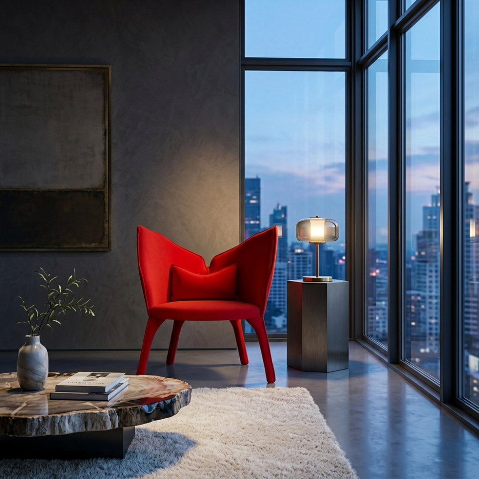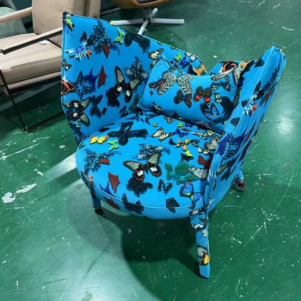 Fauteuil d'appoint moderne de luxe avec dossier en forme d'aile de papillon, chaise sculpturale géométrique haut de gamme, velours bordeaux sur mesure