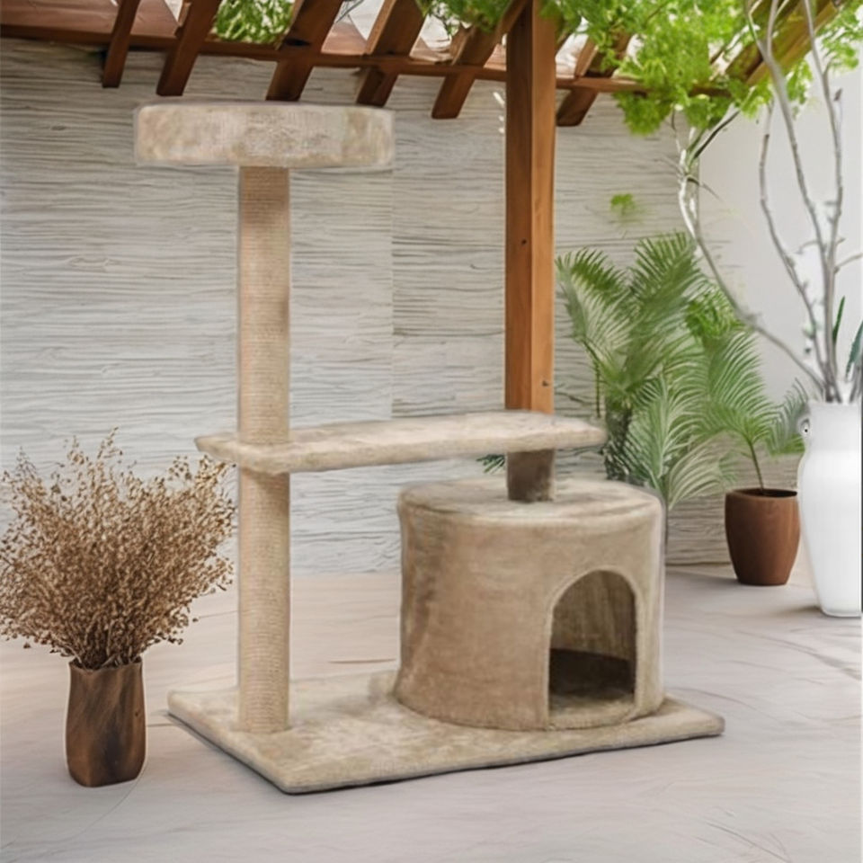 Modern Luxury Cat Tree House Sustainable Outdoor Cat Bed with Large Platform Made of Wood Cloth Sisal Jute for Cat Jumping